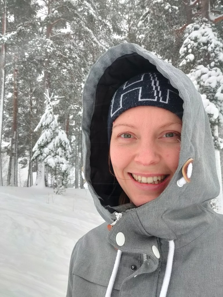 Trivs bäst i naturen, eller hemma. Andas frisk luft, lyssna på skogen och vila huvudet mot en mjuk strand eller vända ansiktet mot solstrålarna på himlen. Tycker om allt med skapande – skriva, baka, måla, pyssla, renovera, odla, snickra, sy… Trivs ypperligt med att läsa, springa på grusvägar, åka skidor och att umgås med folk som lyssnar, får mig att skratta och må bra.