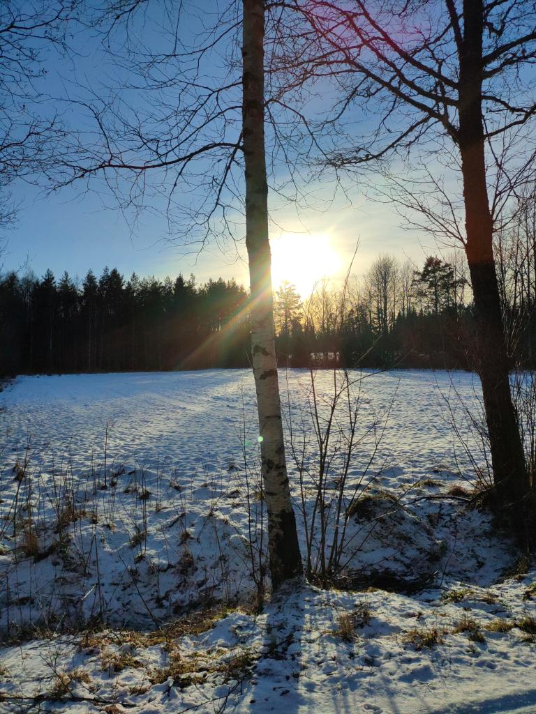 Tidig morgon med hockeyträning och mathandling. Barnens kompis kommer med bussen, lunchen är en trevlig liten stund och alla äter. Ute strålar solen och alla vill vara utomhus en stund i vårt (för dagen) vackra vinterväder.